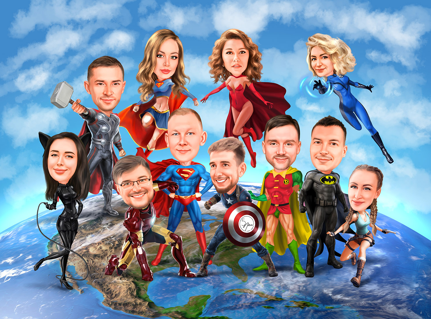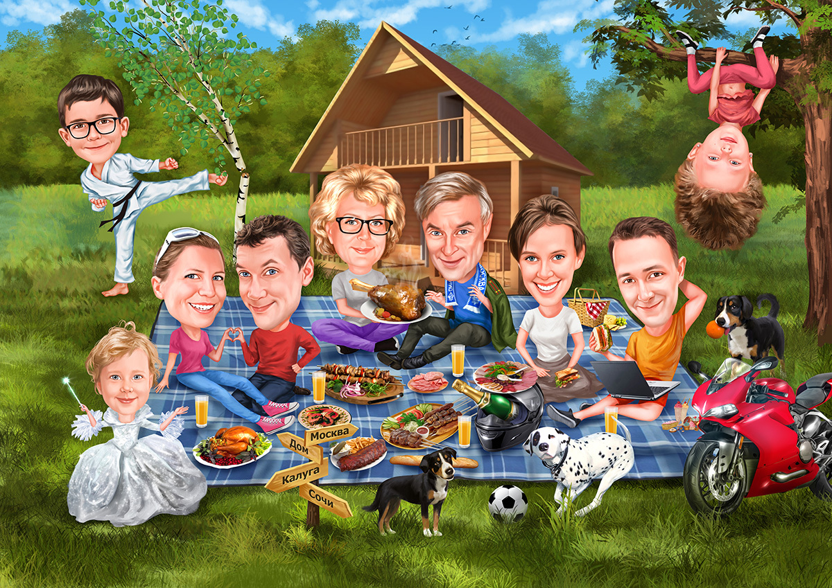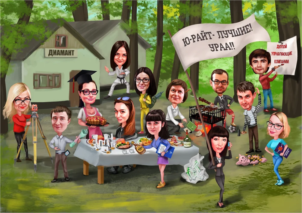 Идей, как можно преподнести наш групповой или корпоративный шарж — великое множество:
