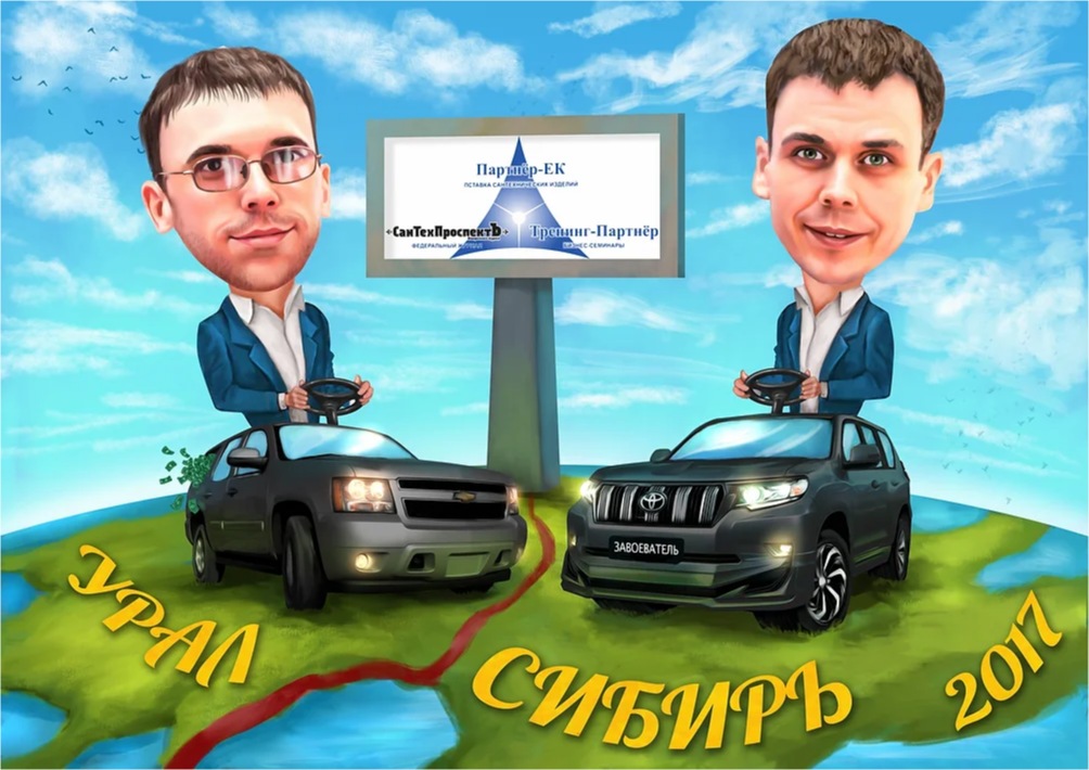 Корпоративный шарж можно подарить боссу на день рождения или на юбилей компании.